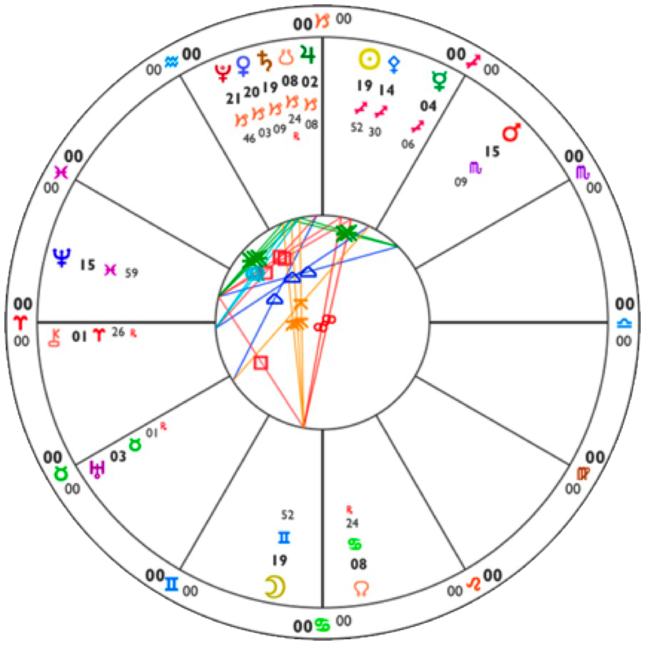 All charts here are using Natural House system: i.e. the Ascendant is always at 0˚ of Aries.